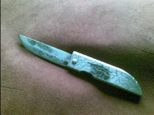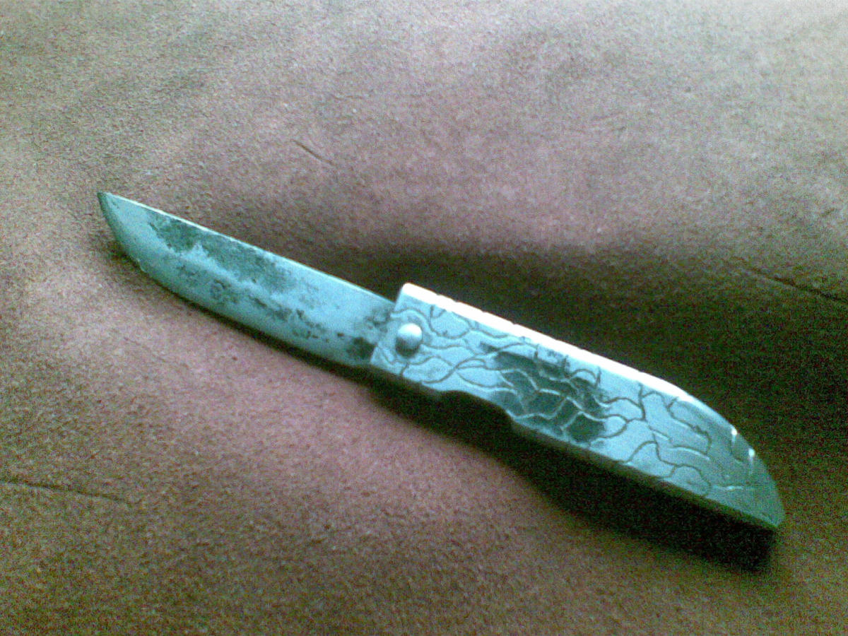 Ein Klappmesser, bei dem die Klinge und der Griff aus Messerstahl gefertigt wurden. Hierbei handelt es sich um ein Einzelstück. Ein solches Messer kann allerdings auf Wunsch in anderer Form gefertigt werden.