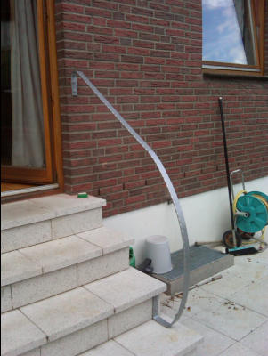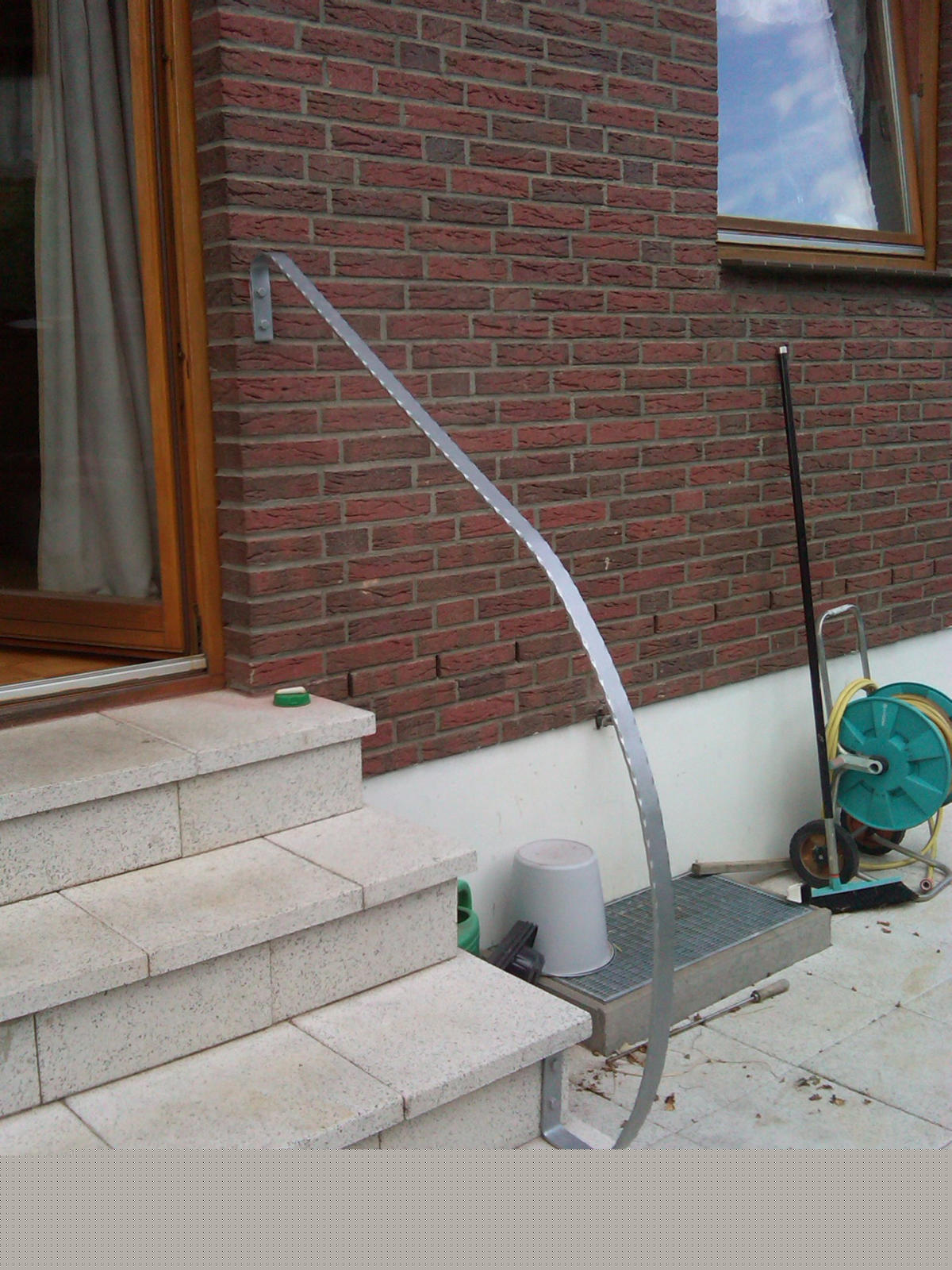 Hier ist ein handgefertigter Handlauf, welcher aus verspanntem Werkzeugstahl hergestellt wurde.