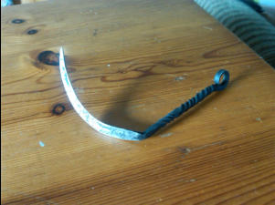 Hierbei handelt es sich um eine Mini-Version einer Sense, die aus Feilenstahl gefertigt wurde.