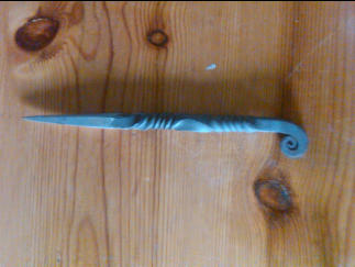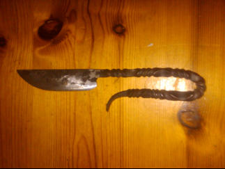Bogenmesser mit individueller Klingenlänge und Griffgröße. Klingengriff ist mit Tordierung verziert